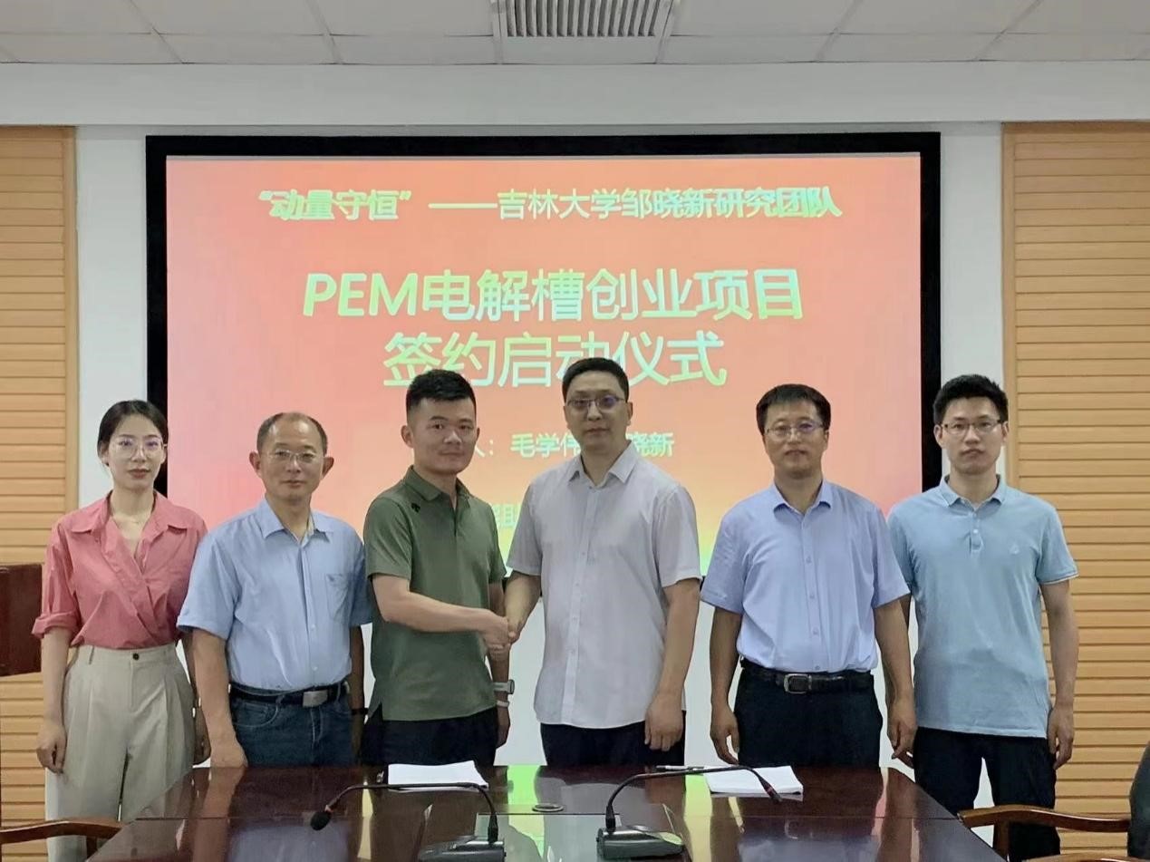 邹晓新教授研究团队与动量守恒创业公司正式签约启动“PEM电解槽创业项目”,双方将依托邹晓新教授研究团队在PEM电解槽低铱催化剂领域的科研成果及研发能力,联合组建催化化学、流体力学、工业设计、企业管理等多学科充分融合的创新创业团队,共同推动我国氢能领域关键技术的自主发展,助力碳中和目标的实现。