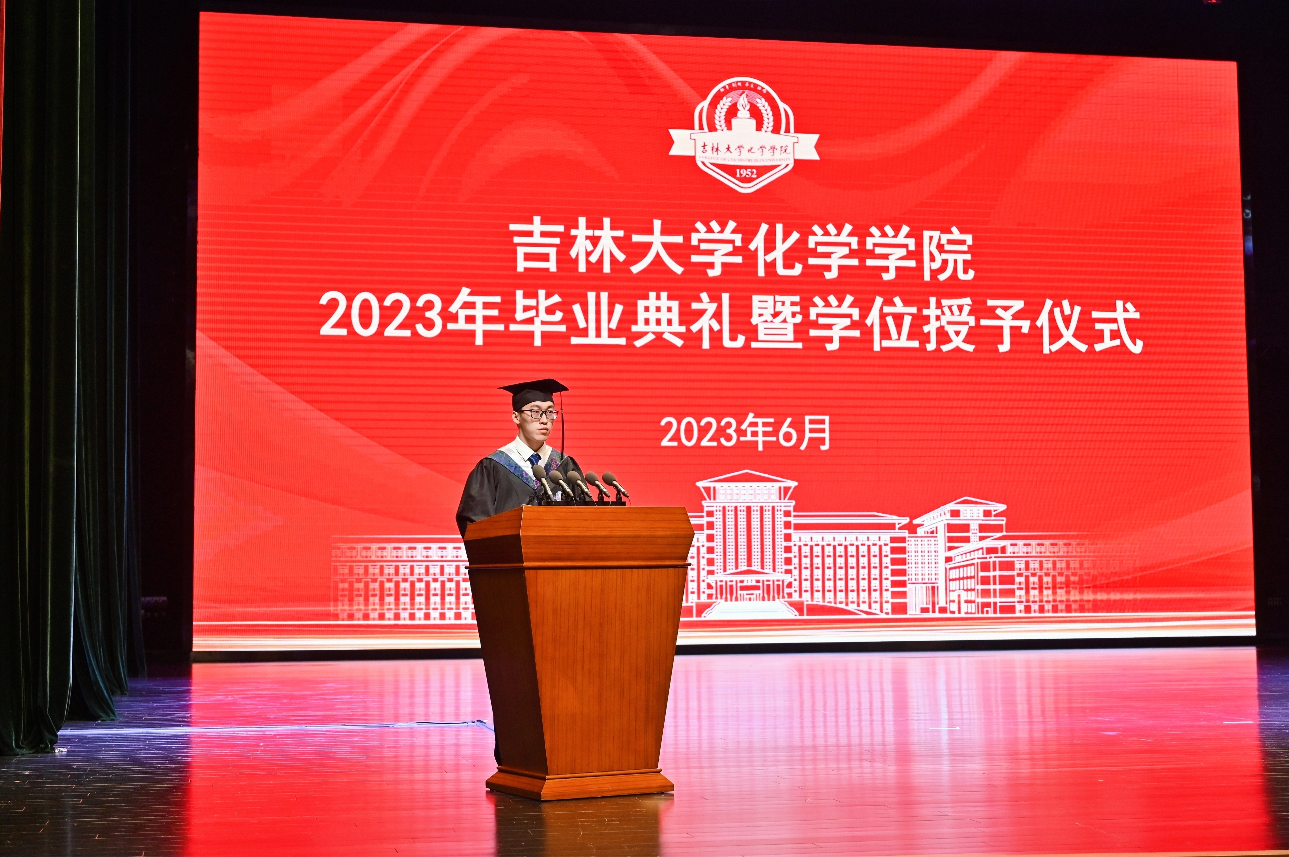 2023届优秀毕业研究生迟茜文发言中深情回忆了在学校求学的美好时光,深深表达了对母校师生的恋恋不舍。她表示,吉大化学是一本书,既博大又包容,既严谨又谦和。吉大化学是一座城,这里永远住着怀揣梦想的人,每一个在这里生活过的人都用自己的时光温暖着她的岁月,都用自己的实际行动守卫着她的荣耀和尊严。她代表全体毕业生为学院送上了最真挚的祝福。