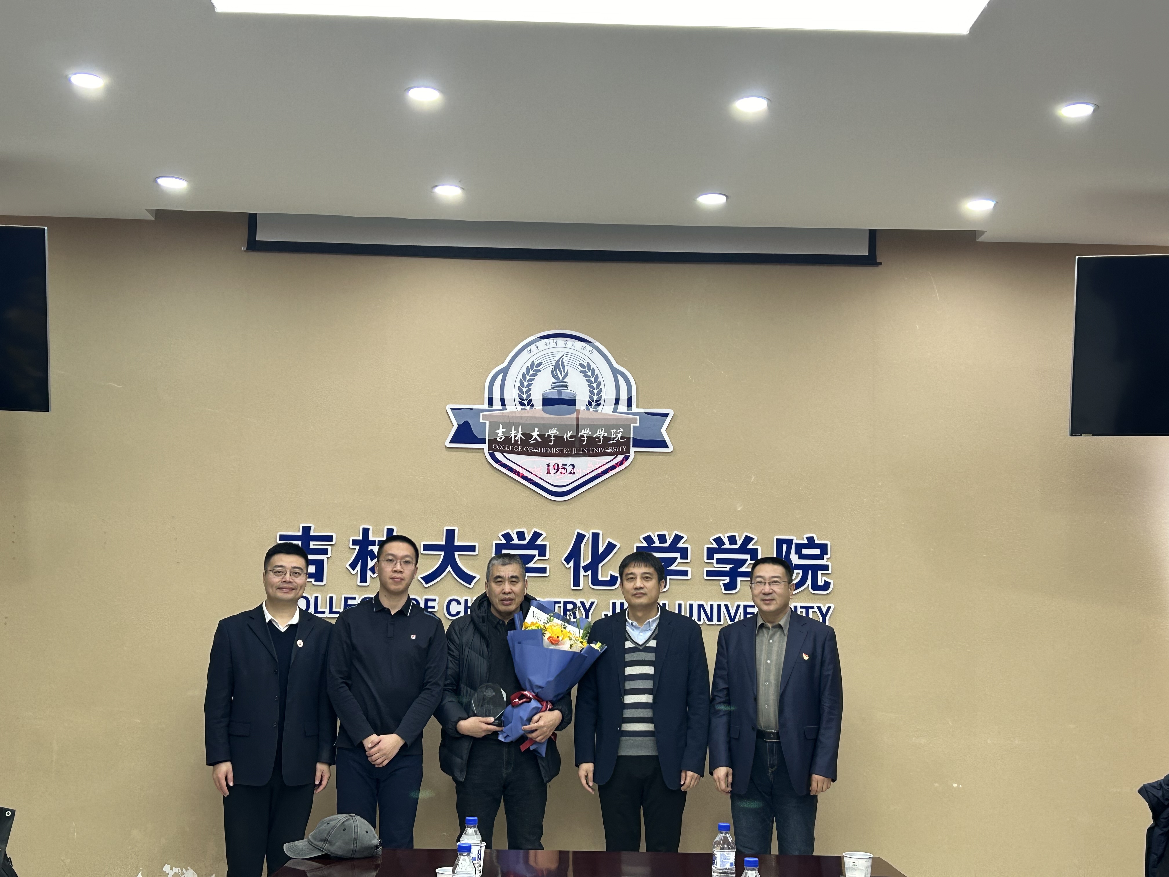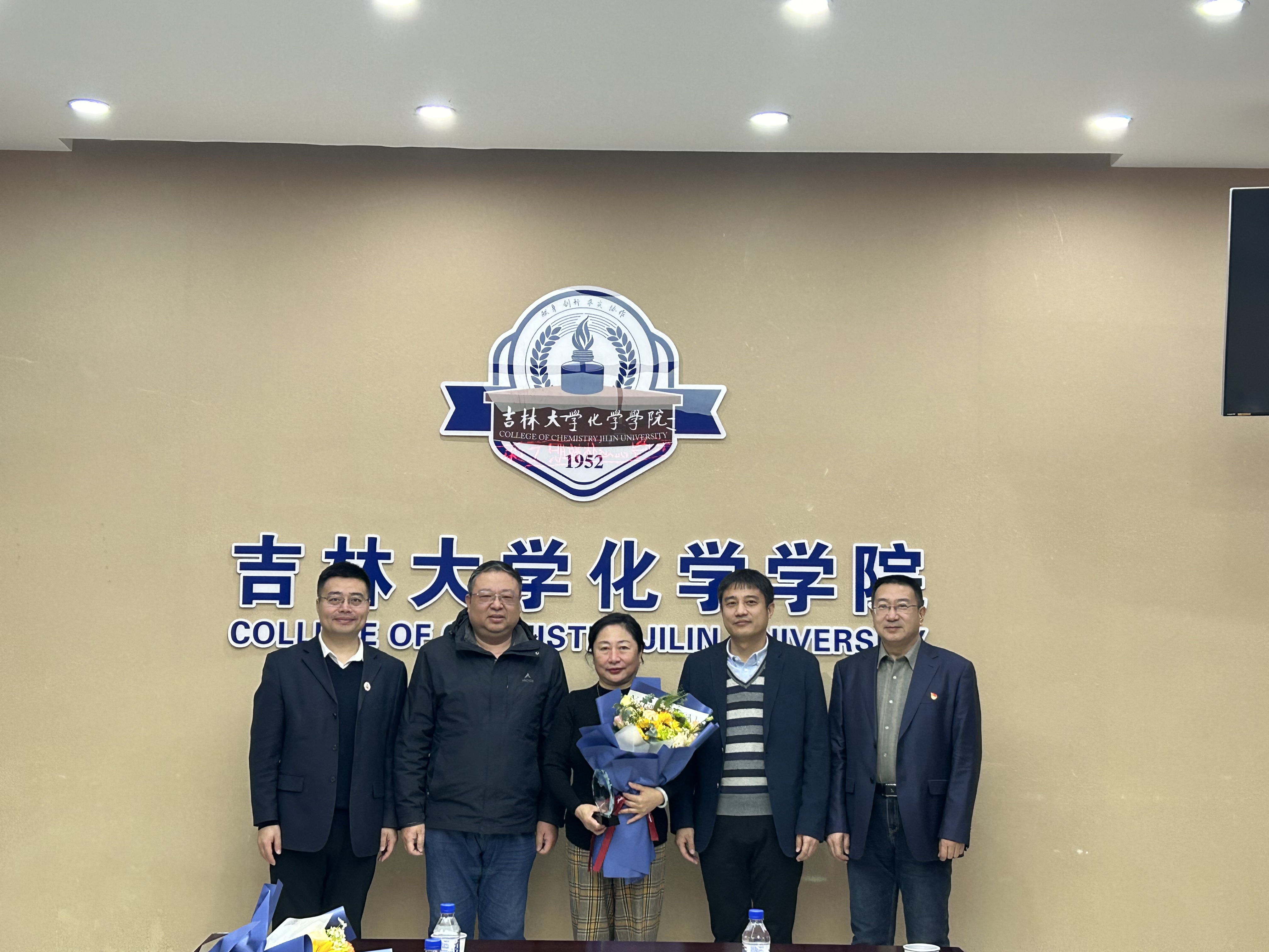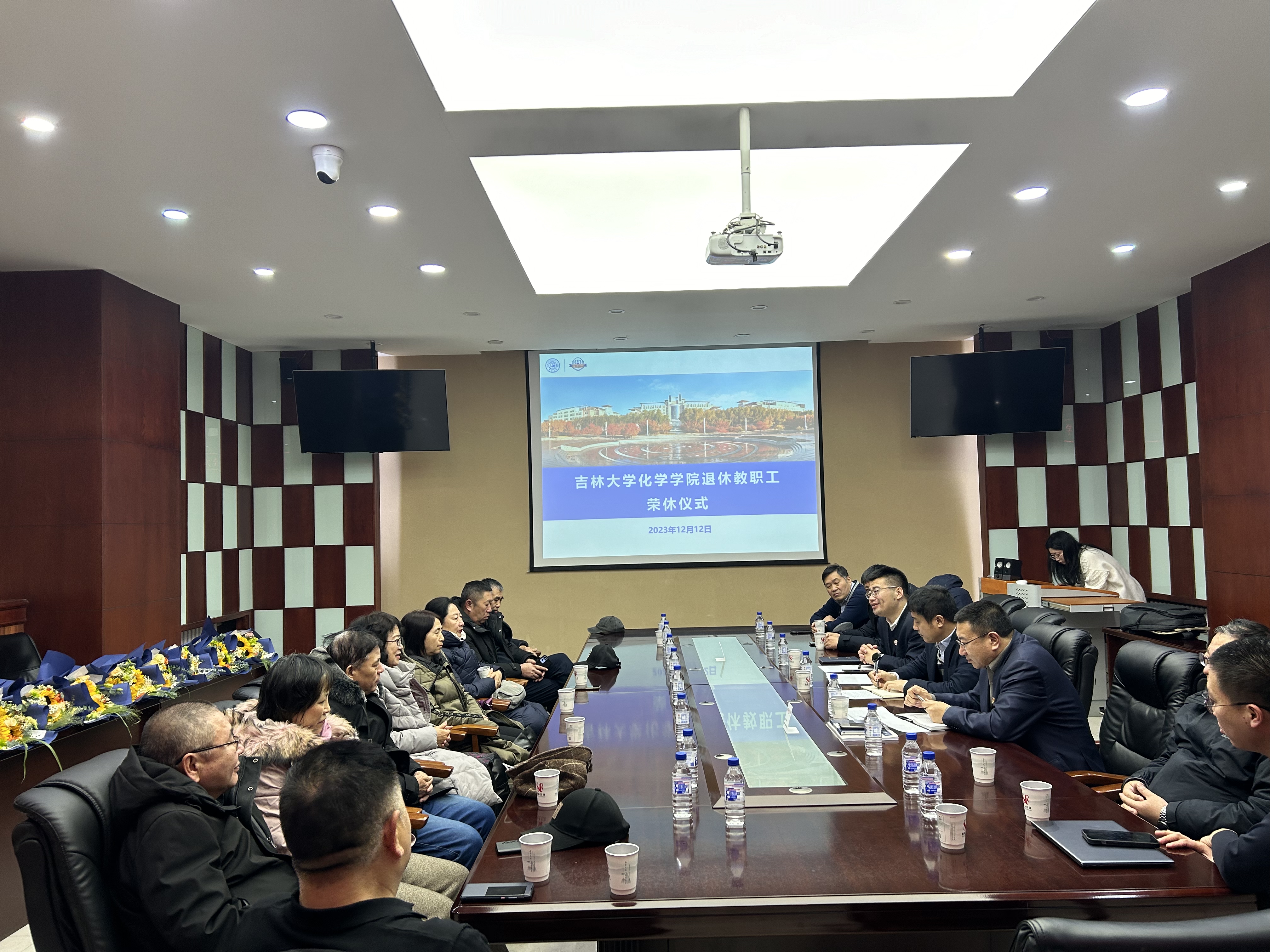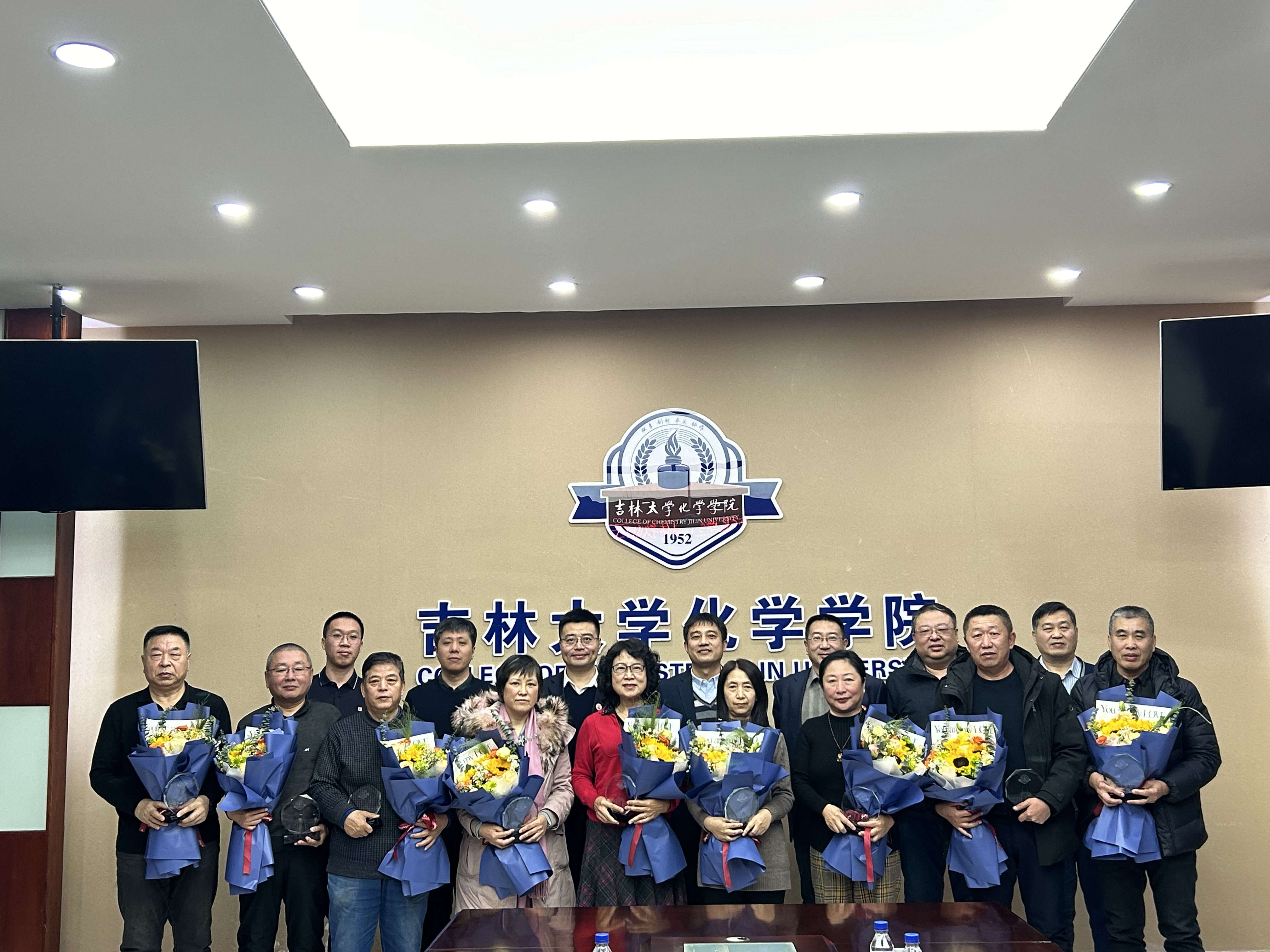 荣休纪念牌,系(所)实验室相关负责人为退休教师敬献鲜花,并合影留念。