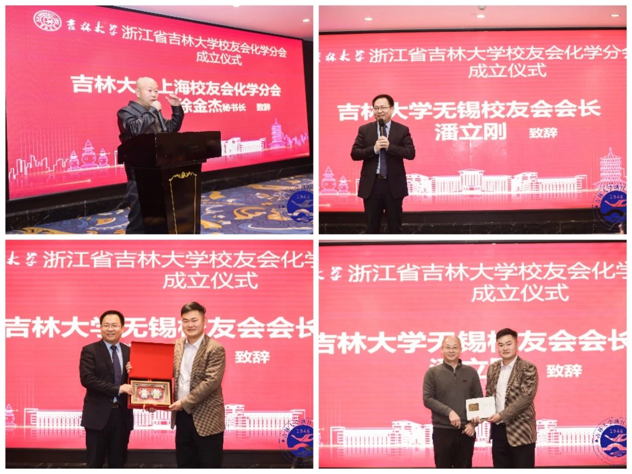 兄弟校友会代表,浙江省北京大学校友会会长陈云峰、辽宁大学浙江校友会会长李欣等在浙知名高校校友会会长,高长有、高明远、牟颖、竺亚斌、苏彬、郑水龙、应子英、商铁存等40余位在浙吉大化学校友齐聚一堂,共同见证成立大会。全球各地吉大化学校友纷纷发来贺信贺电,83级化学校友、杭州师范大学刘俊秋教授,85级化学校友、华南师范大学顾凤龙教授,91成人