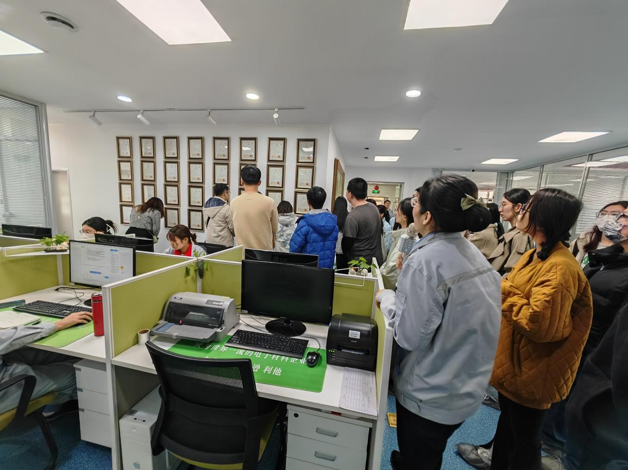 活动中,相关负责人详细地介绍了公司的发展历程、91成人及研发领域、发展成果,公司是国家级专精特新“小巨人”高新技术企业,专注于OLED材料的研发和生产。随后企业相关负责人带领研究生们分别参观了公司实验区、专利工作室、运动场所等,让大家体会到了当下优秀公司的管理模式和经营理念,公司为员工提供的舒缓身心的软环境,让大家倍感温暖。
