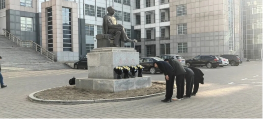 学生代表向唐敖庆先生雕像敬献献花,参加活动师生进行鞠躬默哀,表达了对先贤的崇高敬意与无限怀念。