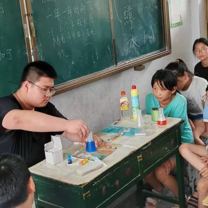 志愿团队结合自身化学专业特长,设计开展小型化学趣味实验、中国科学发展历程讲解等特色课程,激发同学们对科学积极向上的热情。