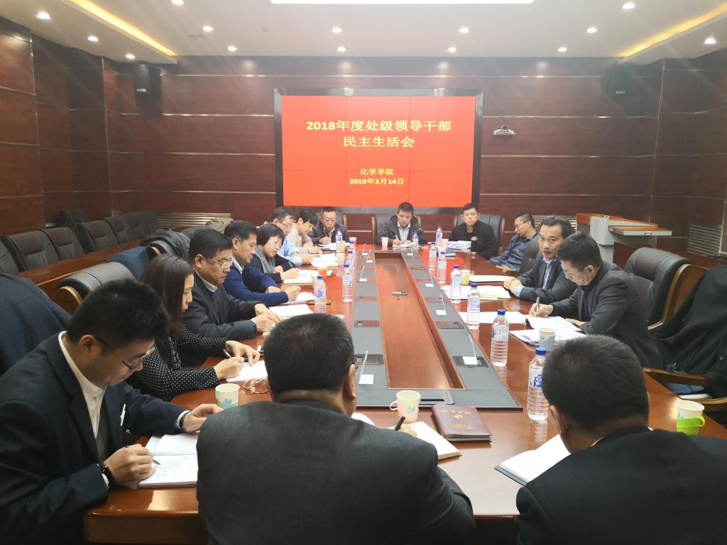 于唐敖庆楼A区509会议,召开了2018年度处级党员领导干部民主生活会。校工会主席陆志东同志、党委巡察工作办公室副主任赵大伟同志到会督导。会议由学院党委书记宁德宽主持,学院全体处级党员领导干部参加了会议,部分非党员的处级领导干部列席了会议。
