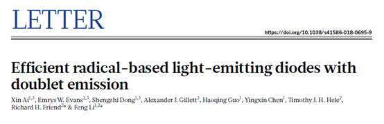 、超分子结构与材料国家重点实验室李峰教授研究团队和剑桥大学卡文迪许实验室(Cavendish Laboratory)Richard H. Friend教授研究团队合作论文“高效双线态自由基发光二极管”(Efficient radical-based light-emitting diodes with doublet emission,Nature, 2018, 563, 536-540),91成人