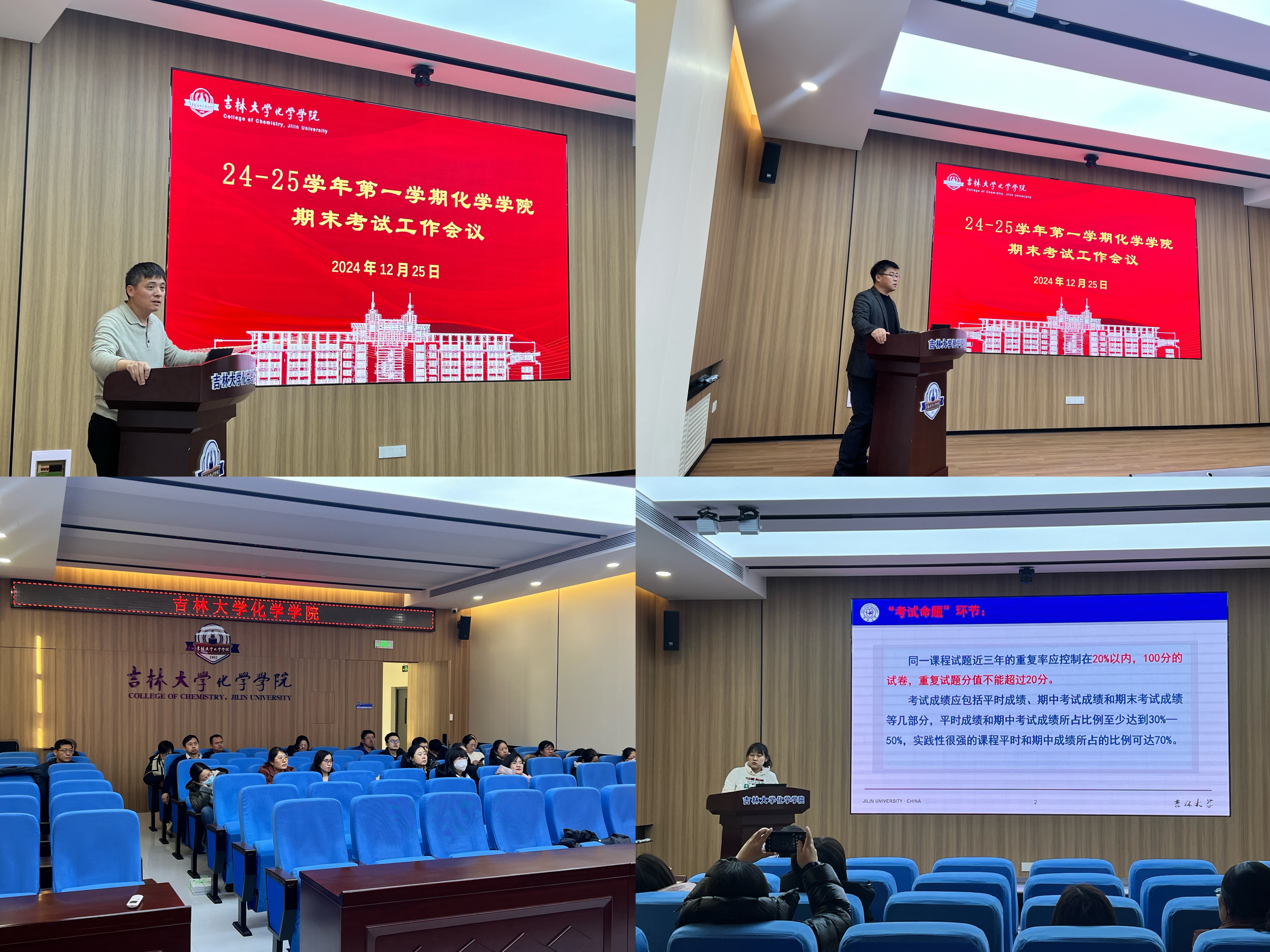 于12月25日在唐敖庆楼409会议室召开了期末考试考前动员会。副院长郭玉鹏教授、学院各系、所主任、督学、理论课主讲教师以及教师代表参加了本次会议,会议由院长助理宋志光教授主持。
