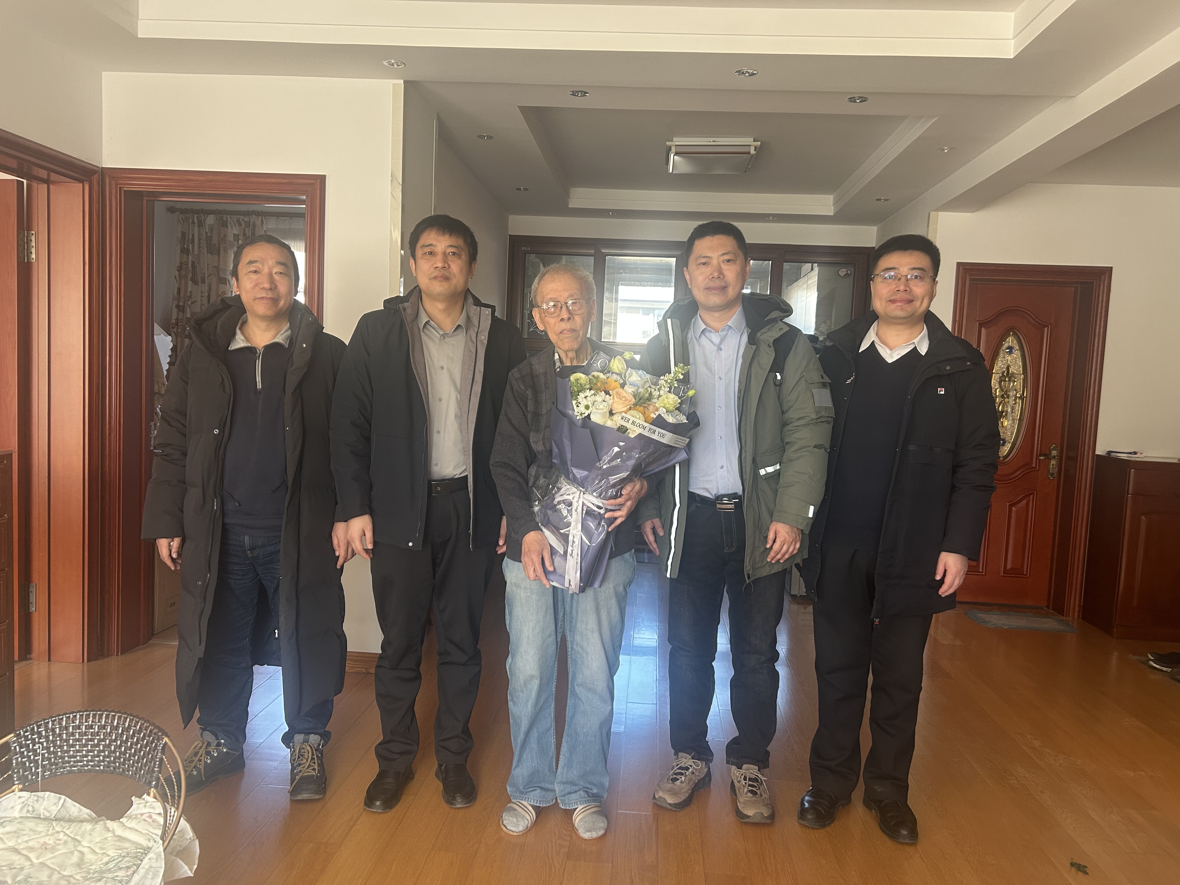 在徐吉庆教授家中,马本华、李乙一行亲切询问徐老师的健康、生活情况,向他汇报了学院近些年在各方面取得的进步。徐吉庆表示,吉大化学如今能够跻身世界前万分之一学科行列,离不开吉大化学人的接续奋斗,更离不开国家对基础研究的稳定支持和持续投入。他指出,新时代的科学研究模式已经发生了深刻变革,人工智能对于科学研究的影响更加深远,我们应紧抓时代发展机遇,探索“化学+”尤其是“化学+AI”的新兴学科发展模式,在学科交叉融通发展中实现新的突破。