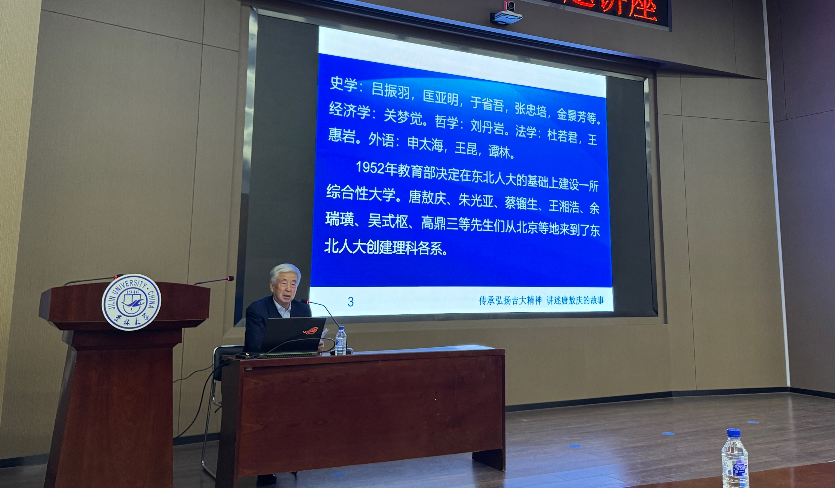 在无机-超分子楼二楼报告厅开展“弘扬北上精神,讲述教育家唐敖庆故事——纪念唐敖庆先生诞辰110周年”专题报告,邀请学校关工委委员王英老师为学院师生作题为“传承弘扬吉大精神,讲述唐敖庆的故事”的报告。