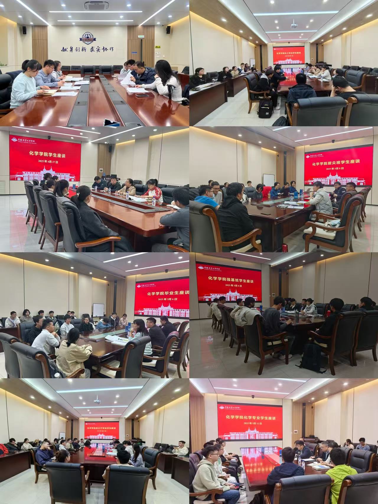 于2025年4月至5月集中开展"人才培养质量提升"专项调研,先后组织应用化学、高分子材料与工程、化学工程与工艺、材料化学、化学5个专业,以及强基班、拔尖班共7场本科生专题座谈会。教学副院长宋志光,各系所负责人、骨干教师及教务管理人员全程参与。