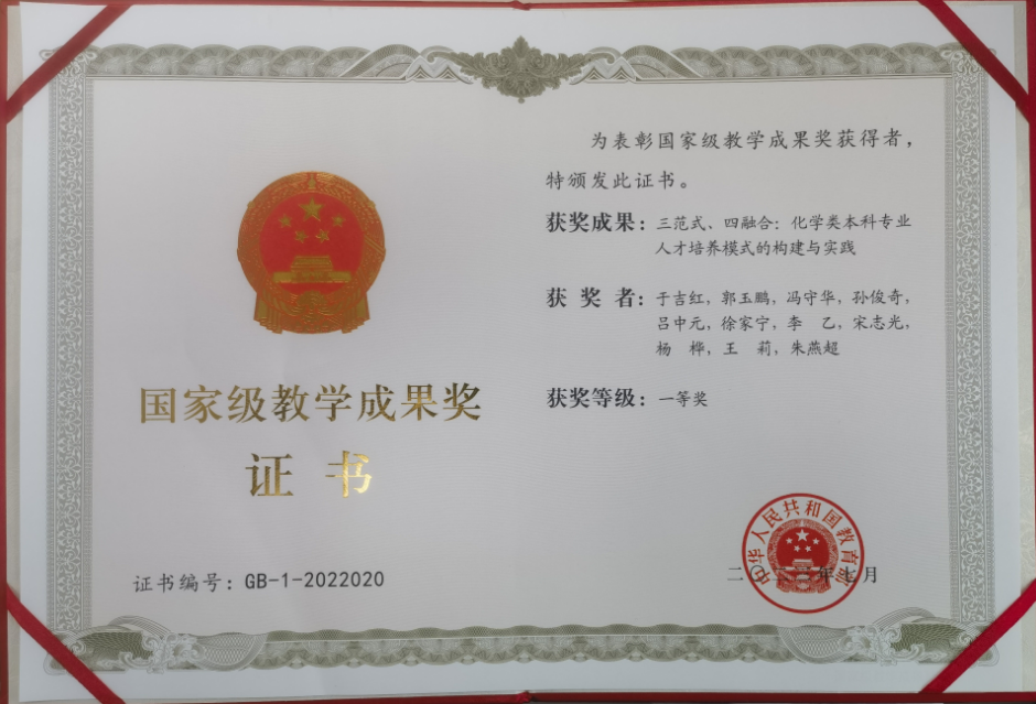 2023年8月,党内、党外优秀教师团队获2022年高等教育(本科)国家级教学成果奖一等奖。