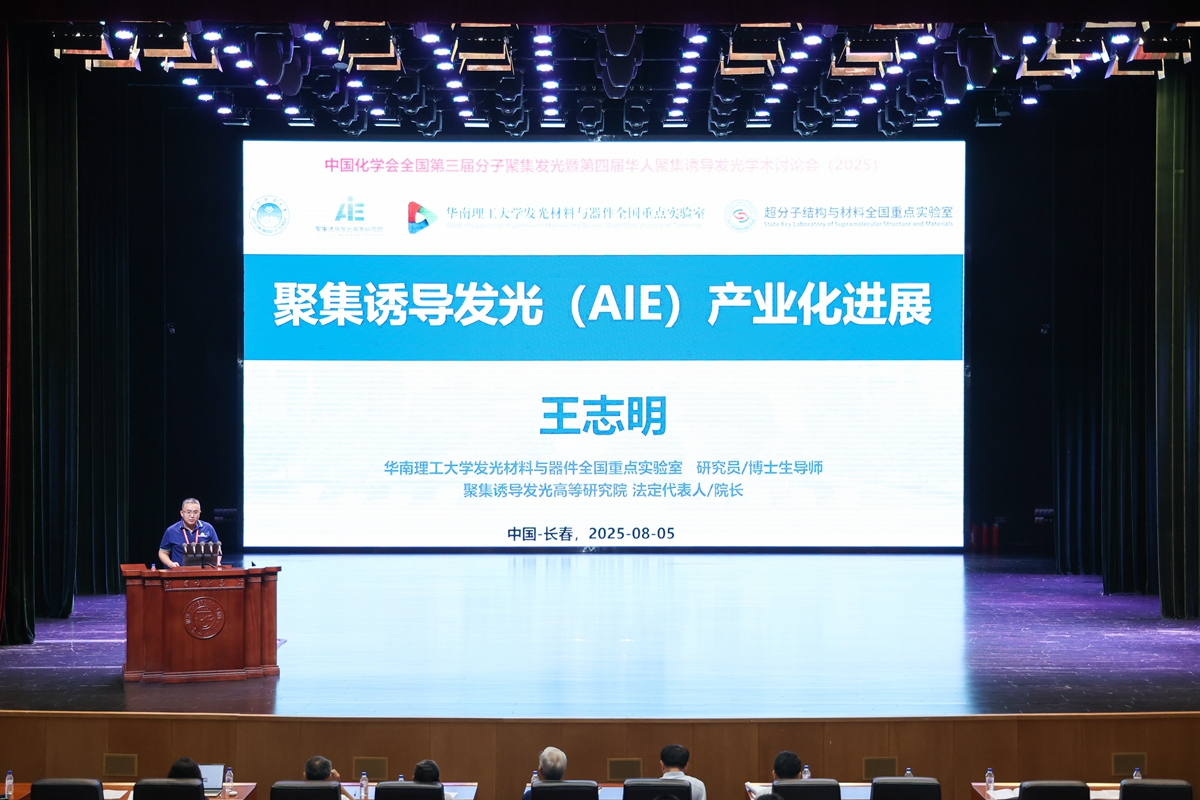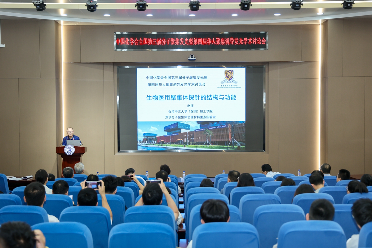 杨柏教授、中国科学院大学彭谦教授、中国科学技术大学张国庆教授、华南理工大学王志明教授、香港中文大学(深圳)赵征教授分别以“碳化聚合物点的合成、结构与性能”“分子聚集发光理论机制及分子设计”“有机聚集体激子的探测和谱学表征”“聚集诱导发光产业化进展”和“生物医用聚集体材料的结构与功能”为主题作大会报告。会议围绕AIE材料体系及机理、AIE材料的光电领域应用、生物医学应用,以及其他与AIE交叉的前沿学科等四个主题方向进行深入研讨,设置4个分会场和AIE研究生论坛,共有2个主旨报告、175个邀请报告、61个口头报告、32个研究生报告,以及62个墙报进行学术交流。
