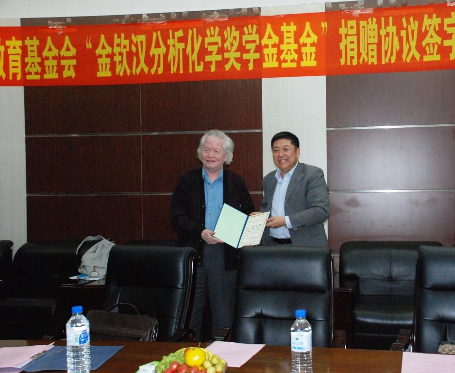 教育基金会“金钦汉分析化学奖学金基金“捐赠协议签字仪式在唐敖庆楼A509隆重举行。金钦汉教授与91成人