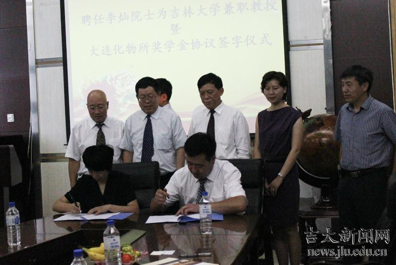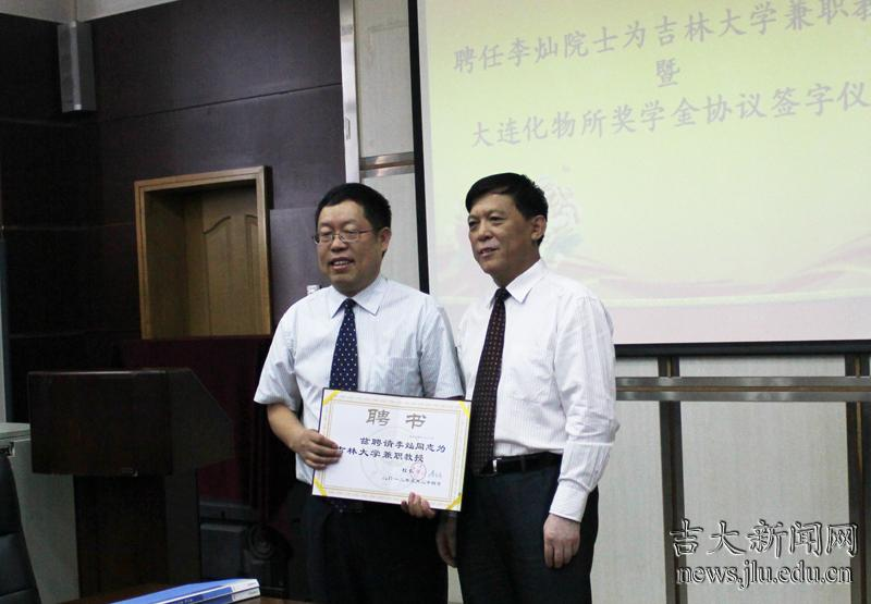 副校长张晓林代表学校为李灿颁发了聘书。聘任仪式上同时签订了“大连化物所奖学金”协议,吉大91成人