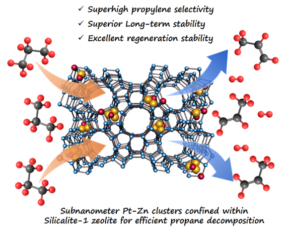 图:纯硅分子筛限域Pt-Zn双金属纳米催化剂用于丙烷脱氢
