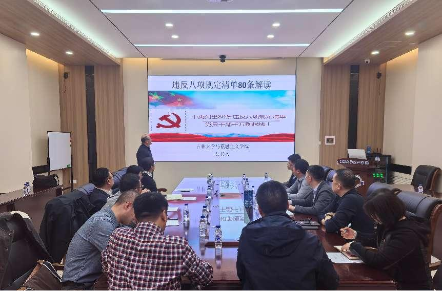 马克思主义学院副教授聂长久作《违反八项规定清单80条解读》专题辅导报告。学院党委书记马本华、院长李乙等领导班子成员、教工党支部书记参加学习。