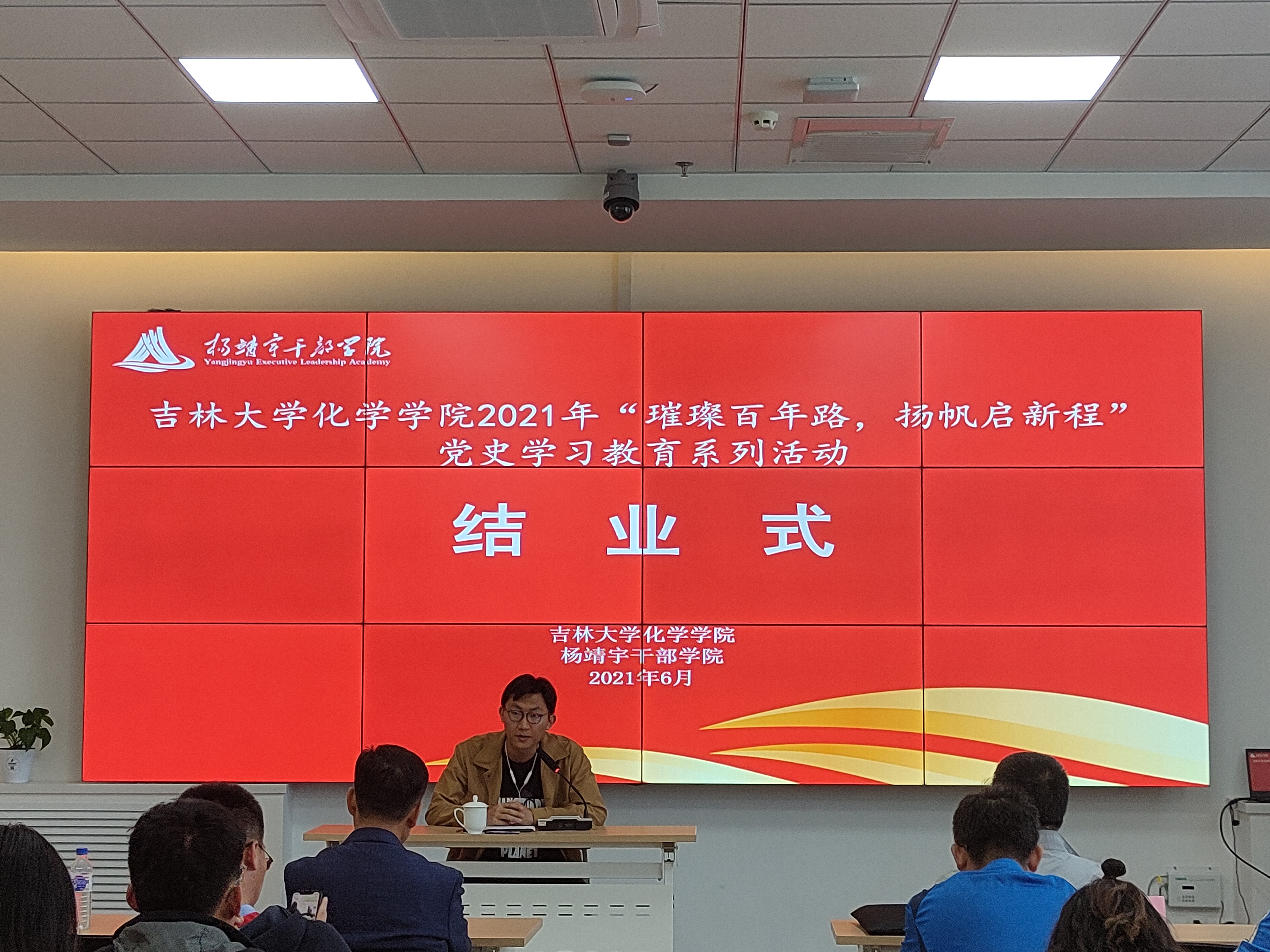 结业式上,干部学院为全体学员颁发了结业证书,学员代表分享了本次活动的心得体会,大家共同在班旗上签名留念。宁德宽在总结讲话中表示,这段发生在东北大地上开始时间最早、坚持时间最长、客观环境最艰苦、牺牲最为巨大的抗战历史形成了“百折不挠”和“不畏牺牲”的东北抗联精神,是新时代中国和东北大地弥足珍贵的精神财富,必将激励中国人民和中华民族克服一切艰难险阻、战胜一切强大敌人。他号召学员们将本次学习教育的收获真正转化为前进的动力,肩负和完成好新时代赋予我们吉大化学人的责任和使命,充分发挥党员先锋模范带头作用,擎起红色信仰之帜,传承大爱家国情怀,用实际行动向党的百年华诞献礼,向91成人