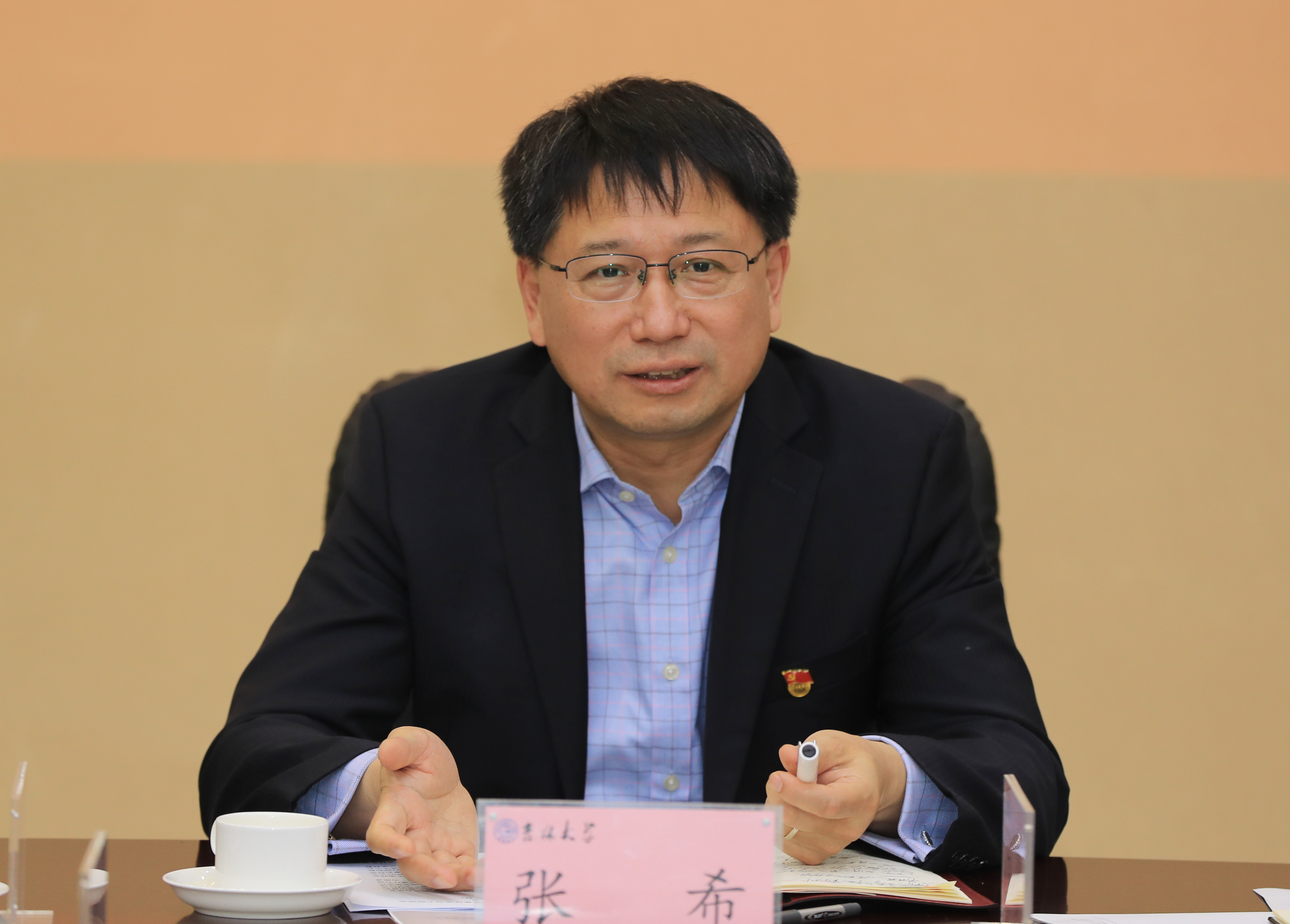 张希指出,习近平总书记在清华大学考察时的重要讲话是一篇指导新时代高等教育改革发展的纲领性文献,深刻揭示了新时代高等教育的历史使命,要求我们坚持中国特色世界一流大学建设目标方向,坚持把立德树人作为根本任务,把服务国家作为最高追求,把学科建设作为发展根基,把深化改革作为强大动力,把加强党的建设作为坚强保证,为党育人、为国育才。