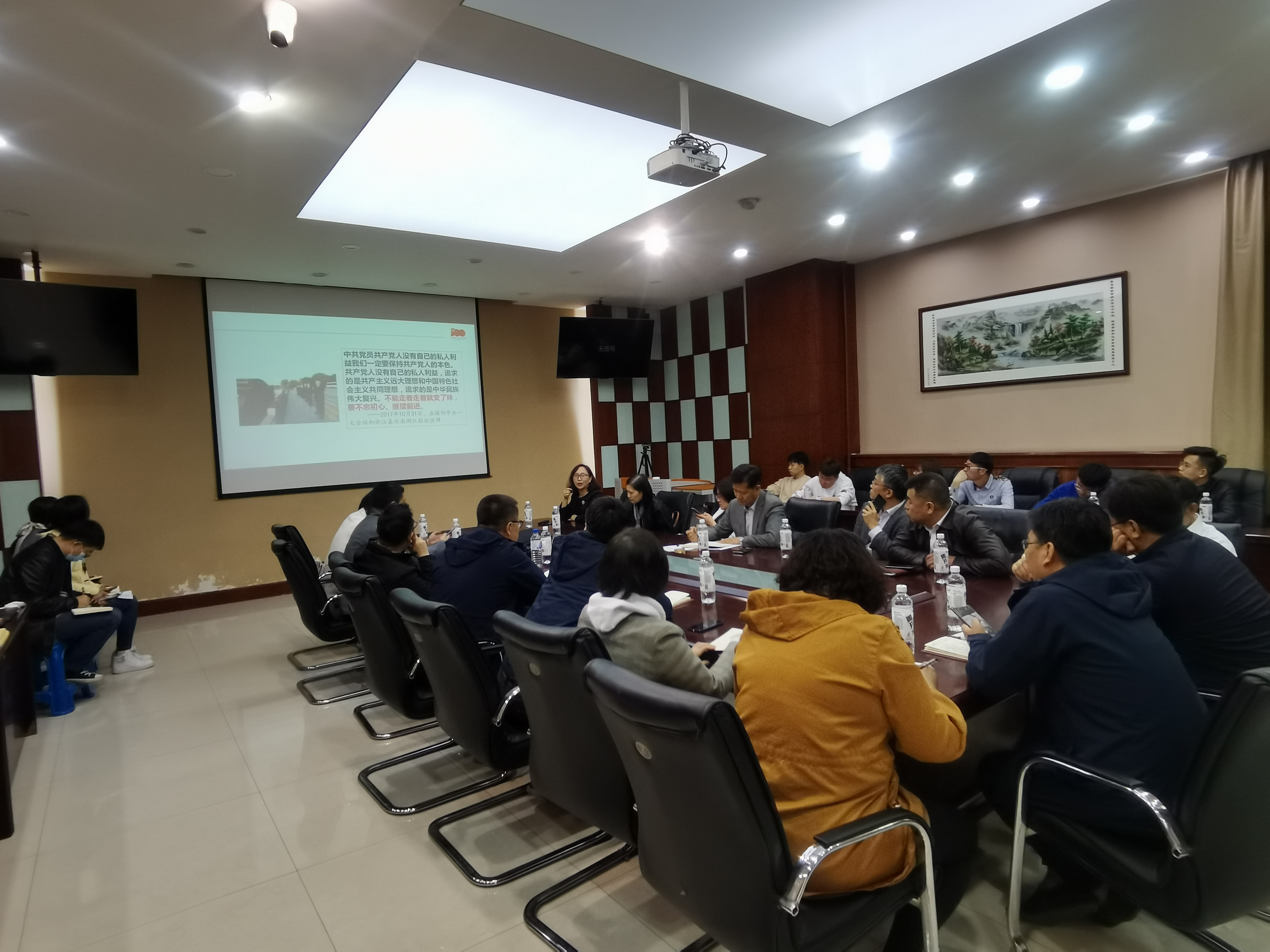 邀请马克思主义学院石瑛教授做“中国共产党百年奋斗的光辉历程与宝贵经验”的专题报告。学院领导班子成员、两委委员、各党支部书记及部分师生党员代表参加了本次活动。活动由党委书记宁德宽主持。