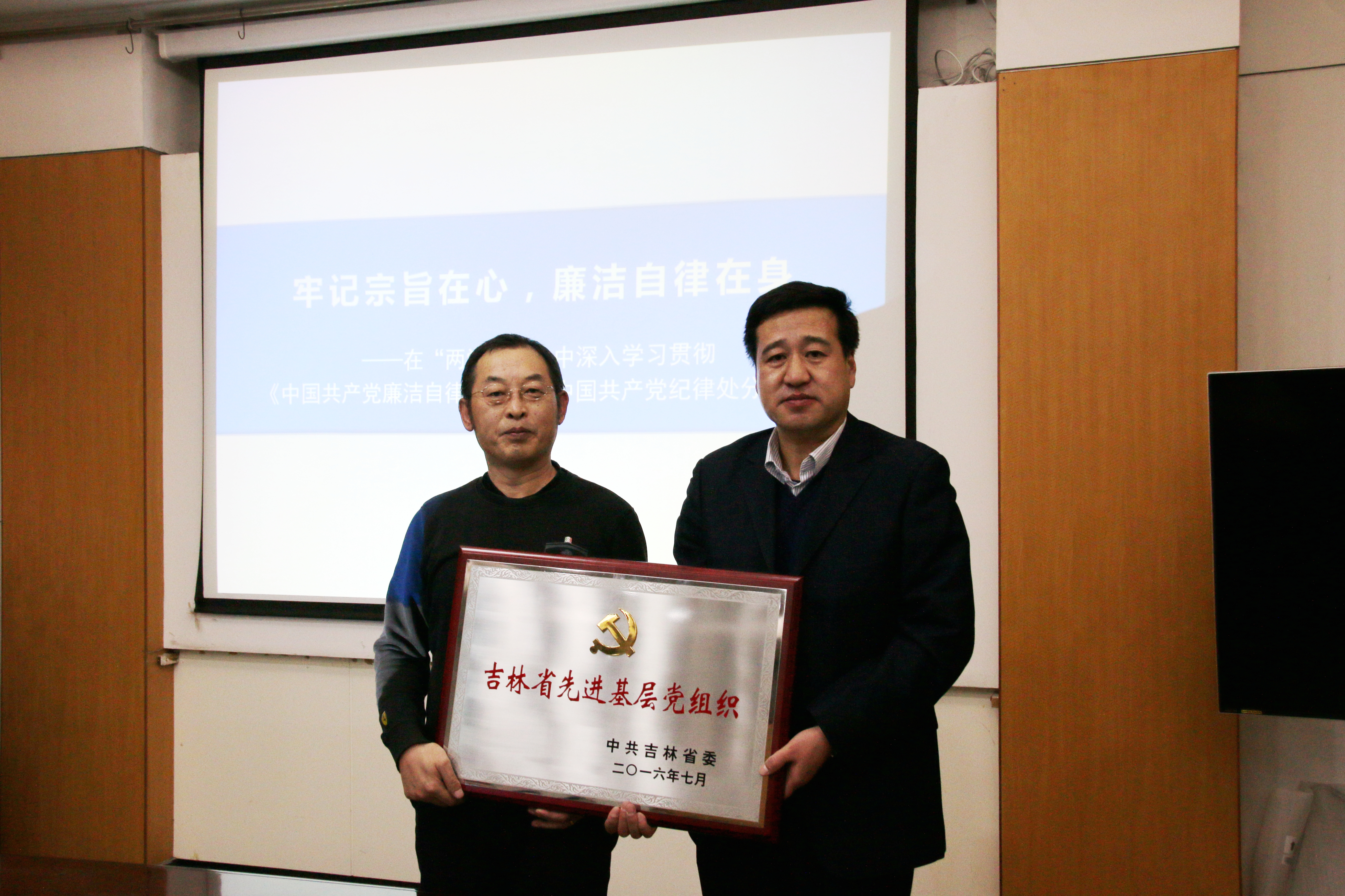 首先,学院党委书记丁世海受学校党委指派,向大家传达了关于吉林省委组织部授予高分子教工党支部“吉林省先进基层党组织”、省高校工委授予高分子教工党支部“先进基层党组织标兵”称号的决定,并向支部颁发奖牌、荣誉证书及奖金。丁书记对高分子教工党支部在推动学院整体党建工作中发挥的作用给予了充分肯定,他希望高分子教工党支部能以“两学一做”学习教育为契机,继续加强党支部和党员队伍建设,充分发挥党支部的战斗堡垒作用和党员的示范引领作用,带动高分子学科的师生凝心聚力,为学院发展贡献力量。