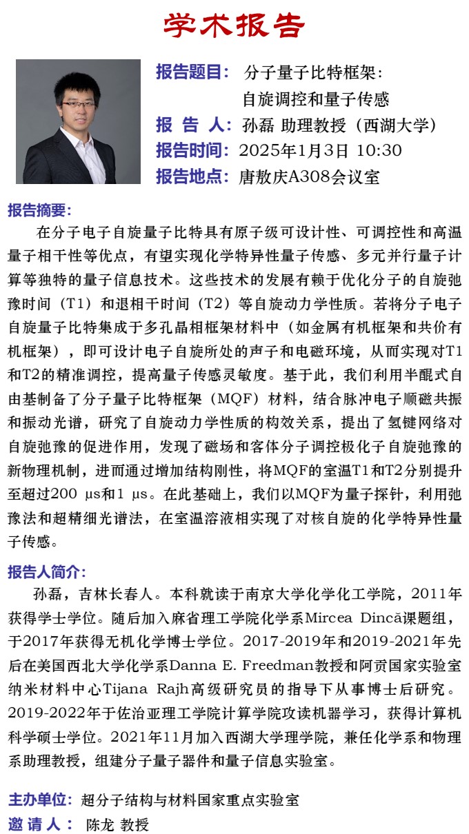 分子量子比特框架:自旋调控和量子传感