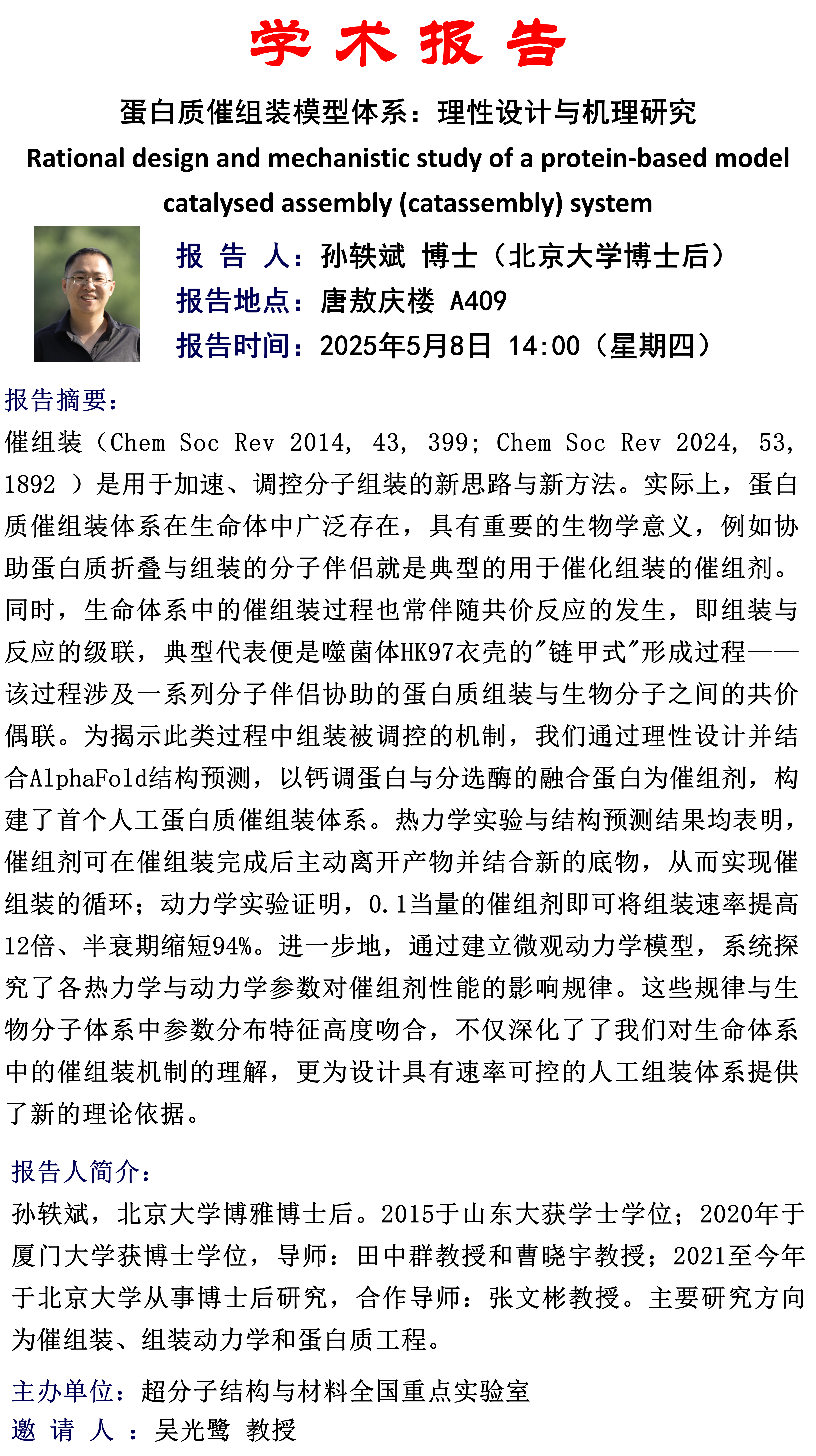 蛋白质催组装模型体系:理性设计与机理研究