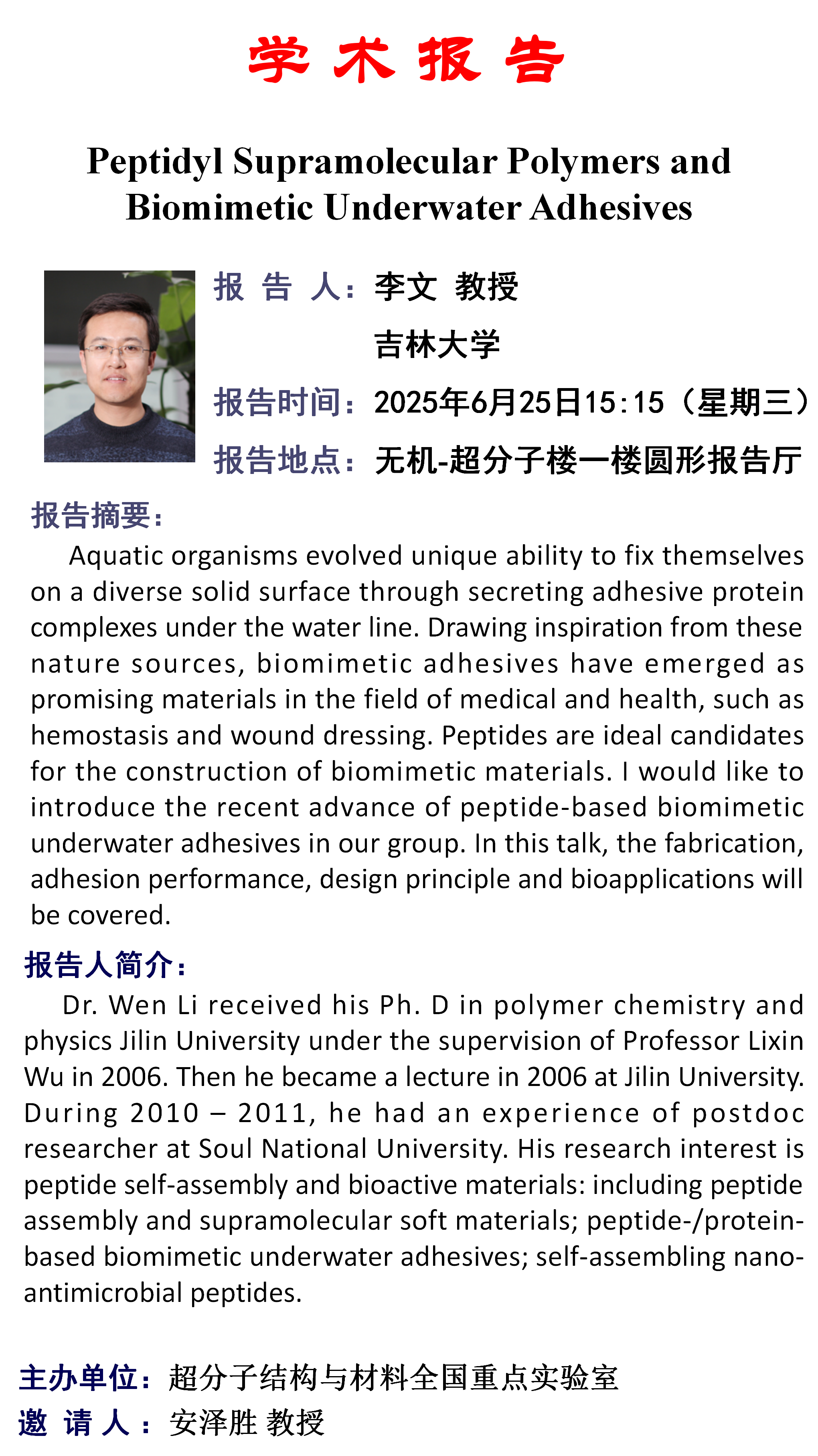 Peptidyl Supramolecular Polymers and Biomimetic Underwater Adhesives