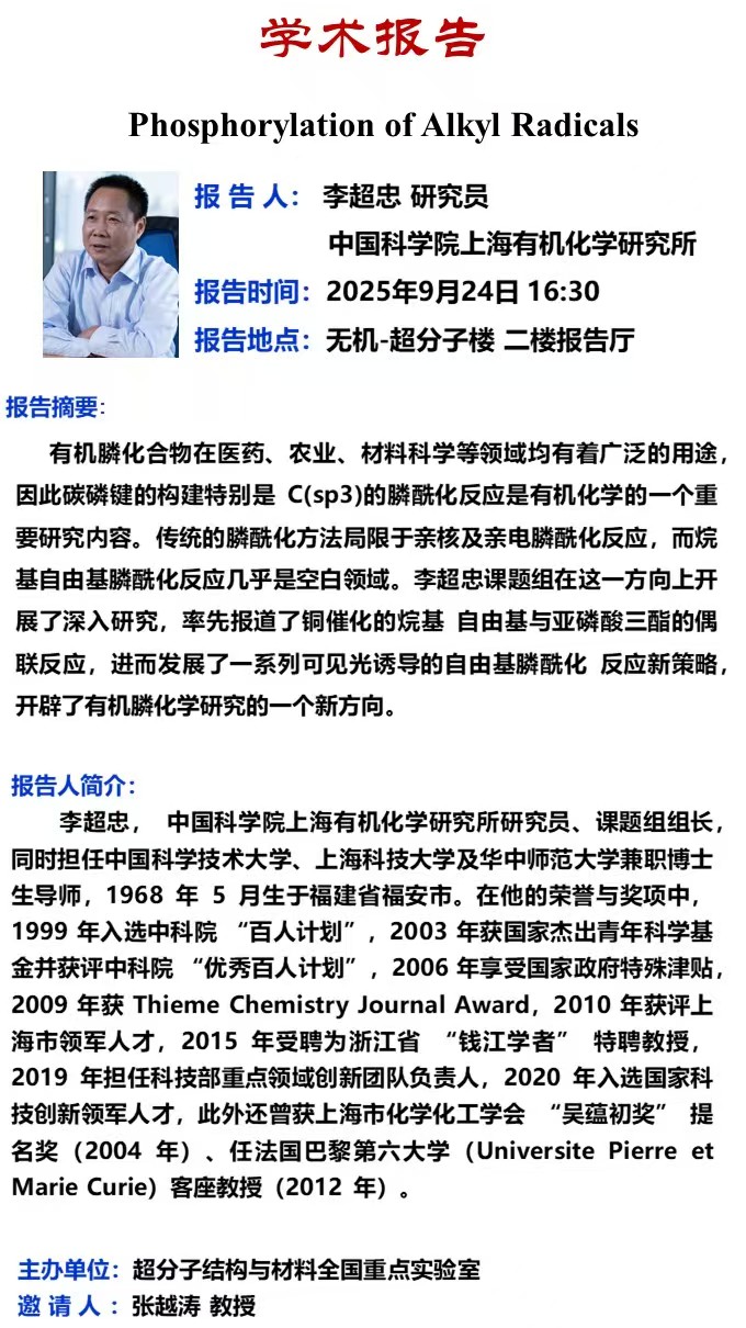 中心校区 无机-超分子楼 二楼报告厅