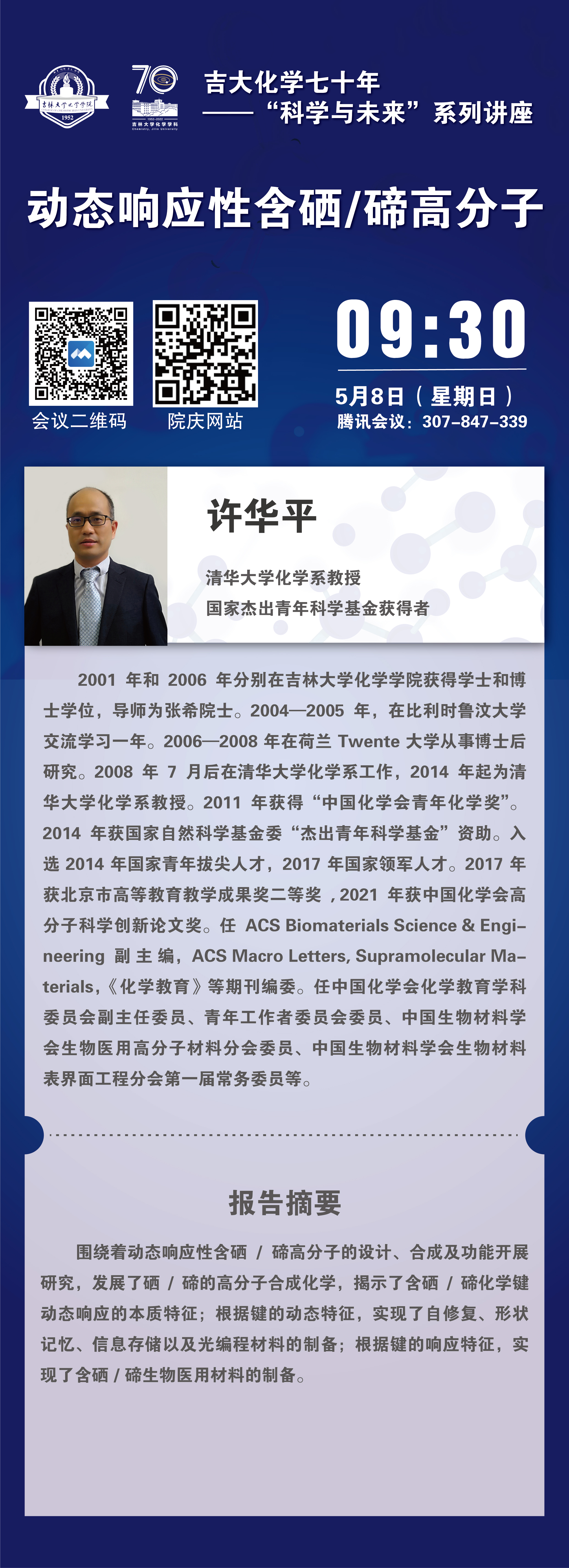 吉大化学70年院庆系列活动——科学与未来系列讲座:动态响应性含硒/碲高分子