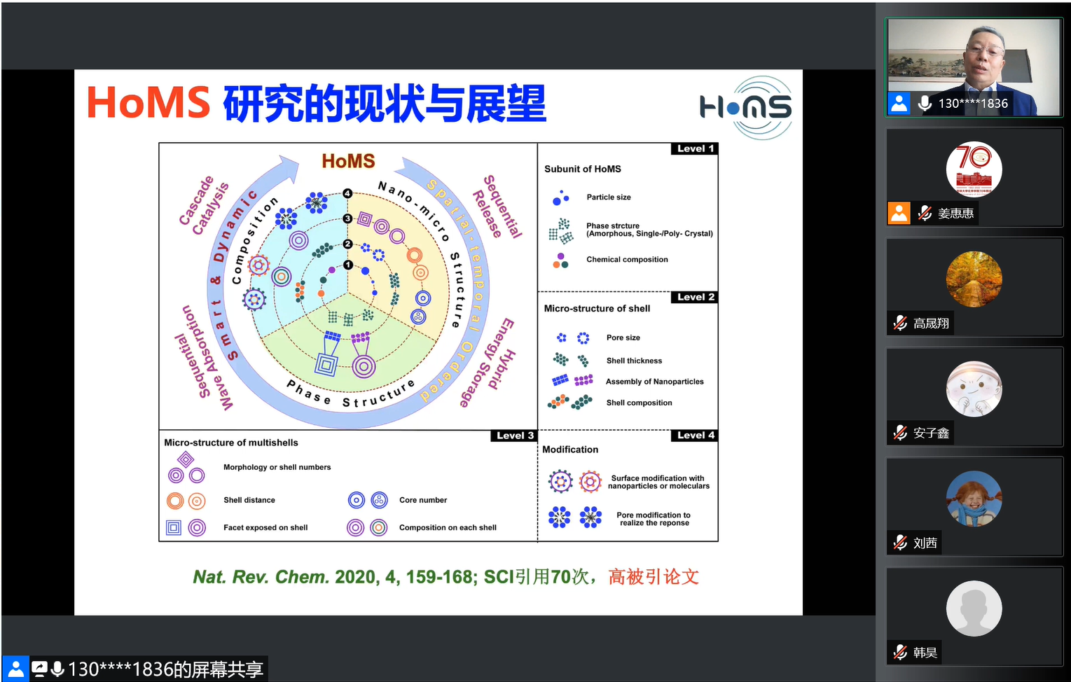 、无机合成与制备化学国家重点实验室、超分子结构与材料国家重点实验室等单位负责人参加讲座,院内外400余名师生在线收看。