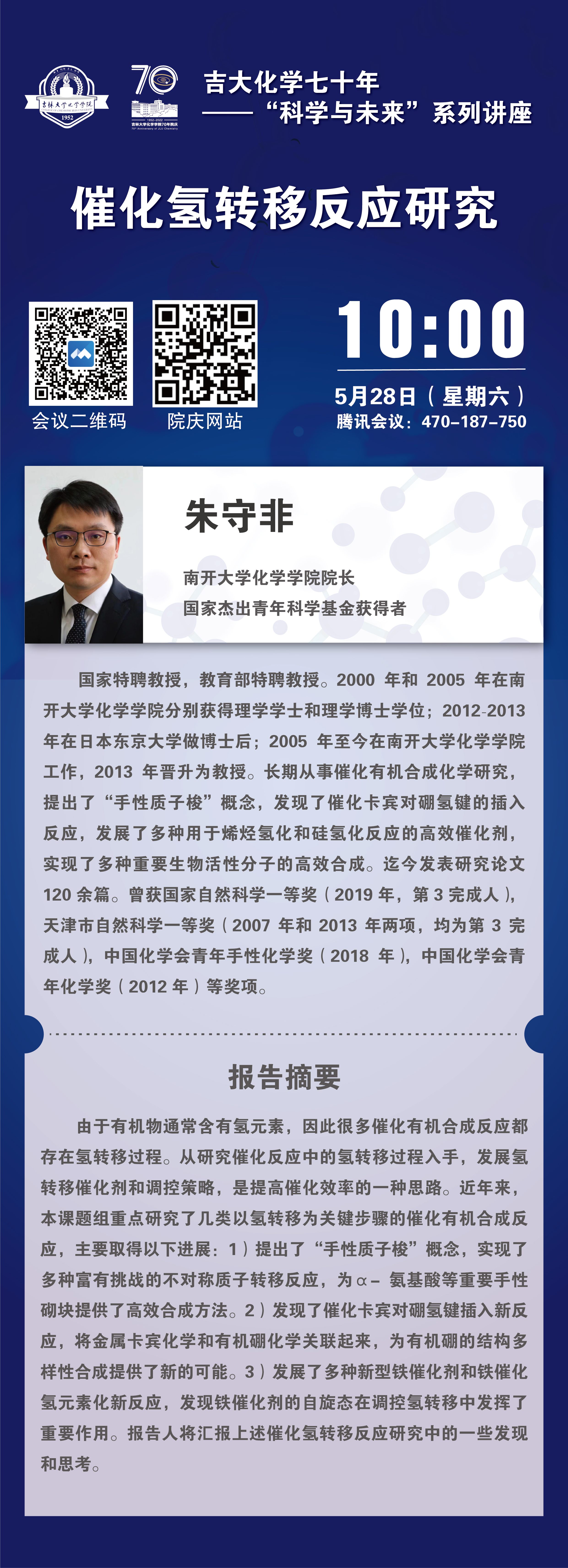 吉大化学70年院庆系列活动——科学与未来系列讲座:催化氢转移反应研究
