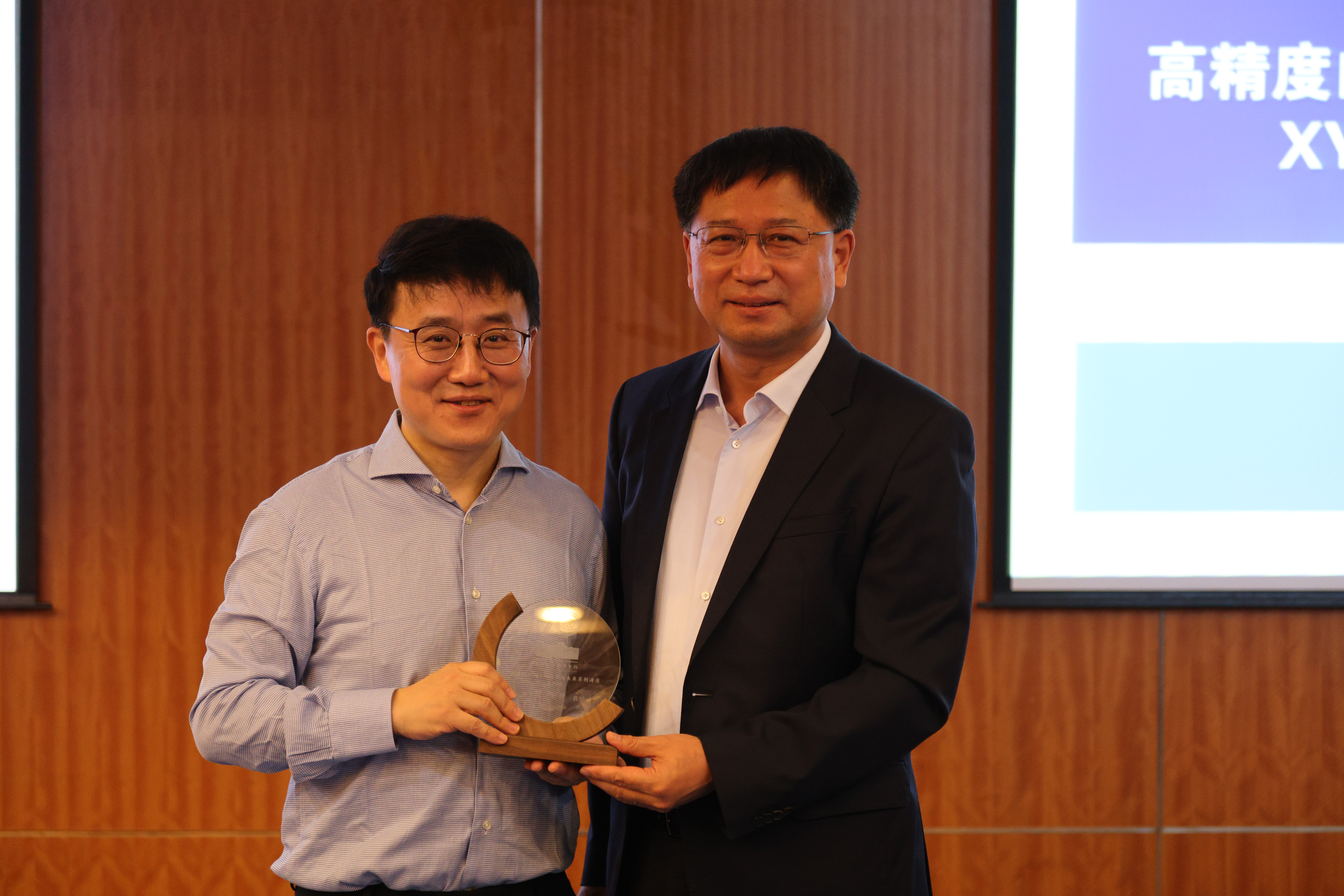 校长张希向徐昕教授颁发“吉大化学七十年——科学与未来系列讲座”纪念牌。