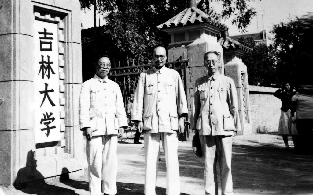 图10:1957年,时任副校长的唐敖庆(左)与匡亚明校长(中)、金景芳教授(右)合影