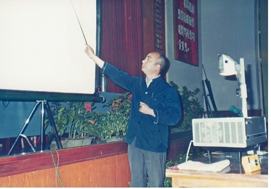 图4:唐敖庆教授(左1)在指导江元生(右1)等人